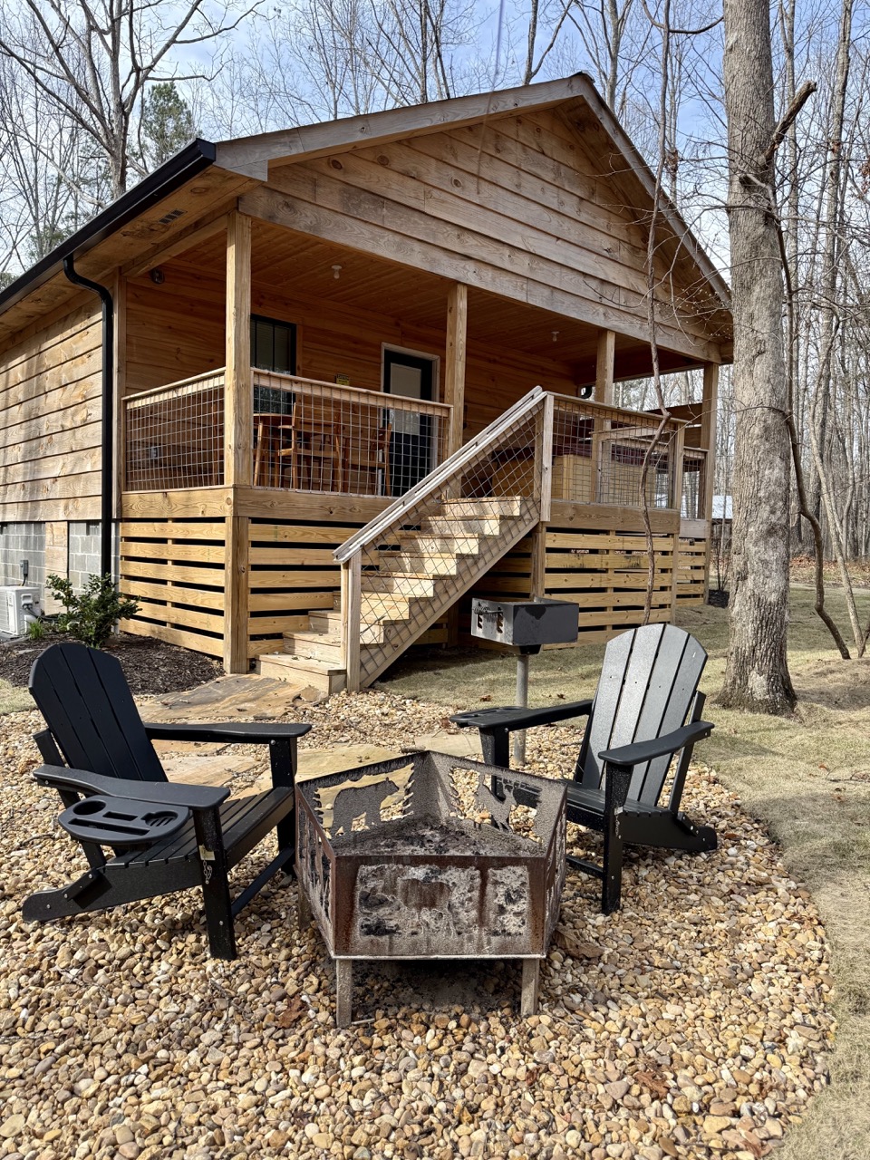 Coyote Den is a warm and inviting cabin tucked among tall trees, just minutes from DeSoto State Park and Little River Canyon. With its mix of rustic wood and modern finishes, this retreat is ideal for couples or solo travelers who want a balance of peace and adventure.