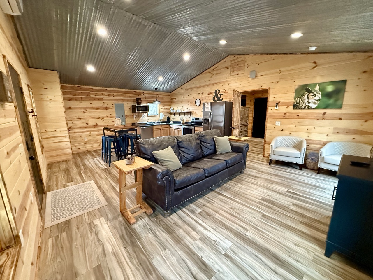 Owl’s Nest is a warm and inviting cabin surrounded by the quiet beauty of the forest. Designed for those who want to unplug and reconnect, this retreat combines rustic charm with modern comforts to create the perfect woodland getaway.