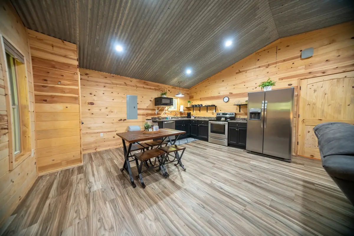 Nestled deep in the forest yet close to all the best outdoor adventures, Deer Trail is a welcoming escape for couples or solo travelers seeking peace and privacy. Its log-style exterior and warm wood interior set the tone for a stay that feels both rustic and refined.
